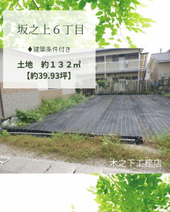 【物件情報】 坂之上6丁目 建築条件付き売地 ◉土地面積 – 132㎡【39.93坪】